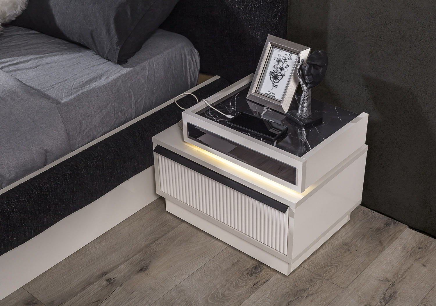 Detaylar: Şık komodinler, fonksiyonel makyaj masası ve geniş aynalı gardırop